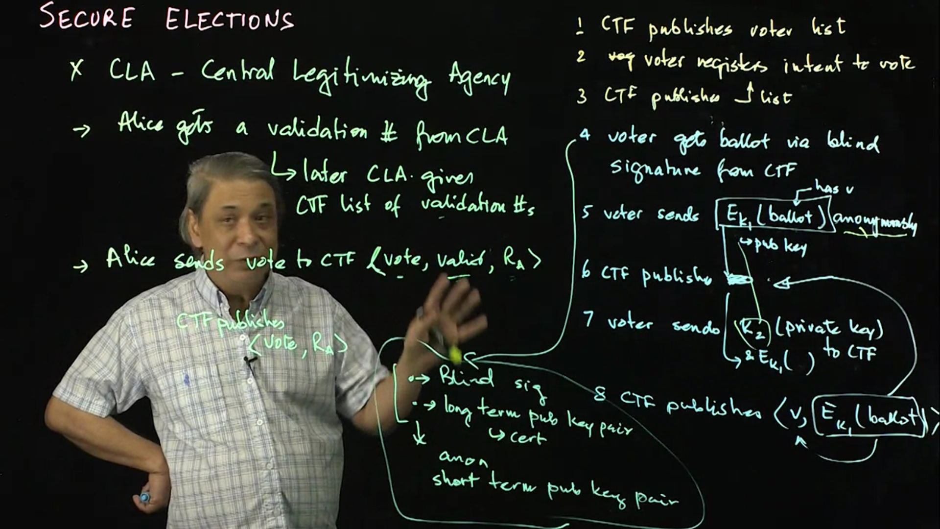 Electronic and digital voting methods are common in elections, though seriously insecure. It is nearly impossible to ensure secure voting protocols. The protocol is covered in this two-part lecture.