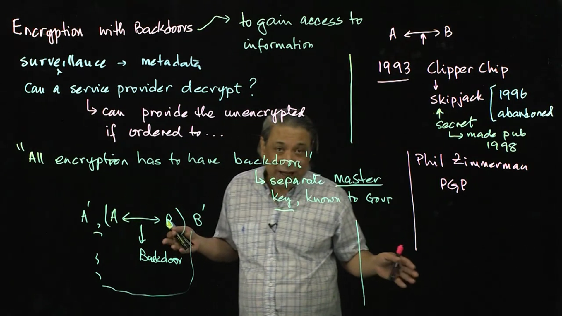 Besides its potential to aid in spying, cryptography can also be coerced to have “backdoors.” In this section, we discuss privacy issues in the current political climate.